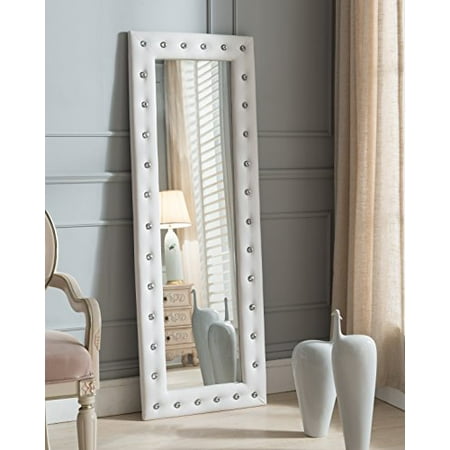 White Tufted Leather Upholstered Modern Standing Floor Mirror